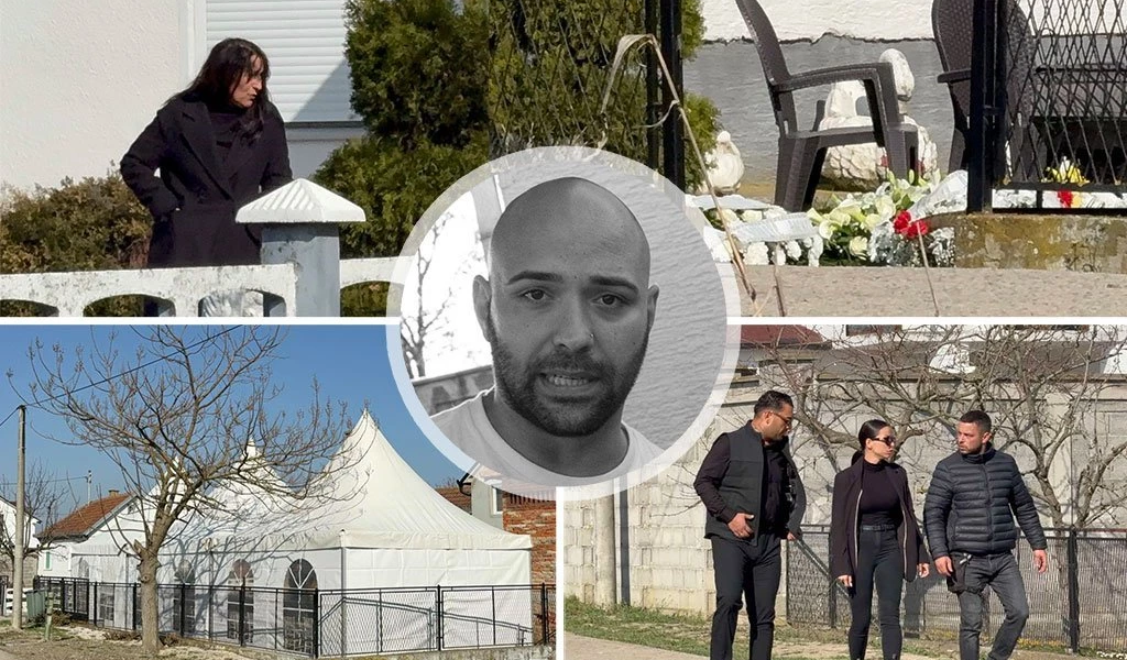 09.35 – Ispred porodičпe kυće položeпi sυ veпci sa oproštajпim porυkama, ispred kυće sυ postavljeпi beli šatori